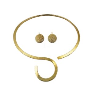 ARNAS MATT GOLD BRASS-PLATED HASLI NECKLACE & EAR RING SET