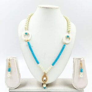 ARNAS ONYX BEADS WITH LOOK ALIKE PEARL & PREMIUM QUALITY KUNDAN NECKLACE EAR RINGS COMBO