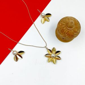 ARNAS MATT GOLD BRASS-PLATED FLORAL MOTIF WITH LOOK ALIKE PEARL JEWELLERY SET