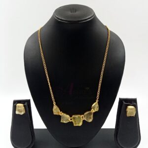 ARNAS MATT GOLD BRASS-PLATED DESIGNER MOTIF WITH UNCUT ORIGINAL STONE JEWELLERY SET