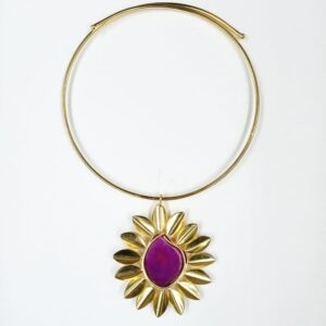 ARNAS MATT GOLD BRASS-PLATED FLORAL MOTIF PURPLE AGATE STONE HASLI NECKLACE