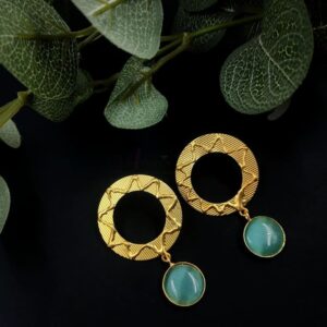 ARNAS 1 PAIR PACK OF GOLDEN BRASS METAL WITH MONALISA STONE DESIGNER ROUND MOTIVE EARRING