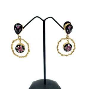 ARNAS 1 PAIR PACK OF GOLDEN BRASS METAL WITH TANJOR PAINTED STONE DESIGNER MOTIVE EARRING