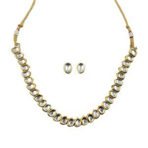 KUNDANSET0016 – ARNAS SINGLE LAYER PREMIUM QUALITY MEENAKARI KUNDAN NECKLACE EAR RINGS COMBO