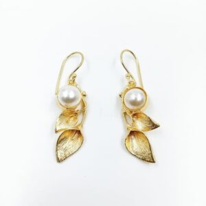 ARNAS 1 PAIR GOLDEN BRASS METAL WITH LOOK ALIKE PEARL DESIGNER LEAF MOTIVE EARRING