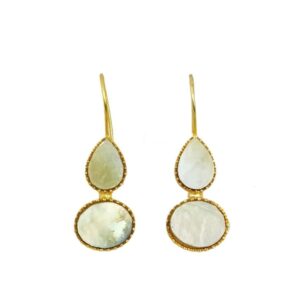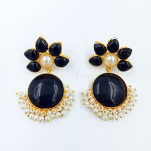 ARNAS 1 PAIR GOLDEN BRASS METAL WITH LOOK ALIKE PEARL & MONALISA STONE DESIGNER EARRINGS