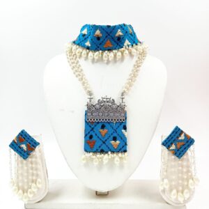 FABRICJ0016- ARNAS HANDMADE SKY BLUE FABRIC DESIGNER JEWELLERY SET