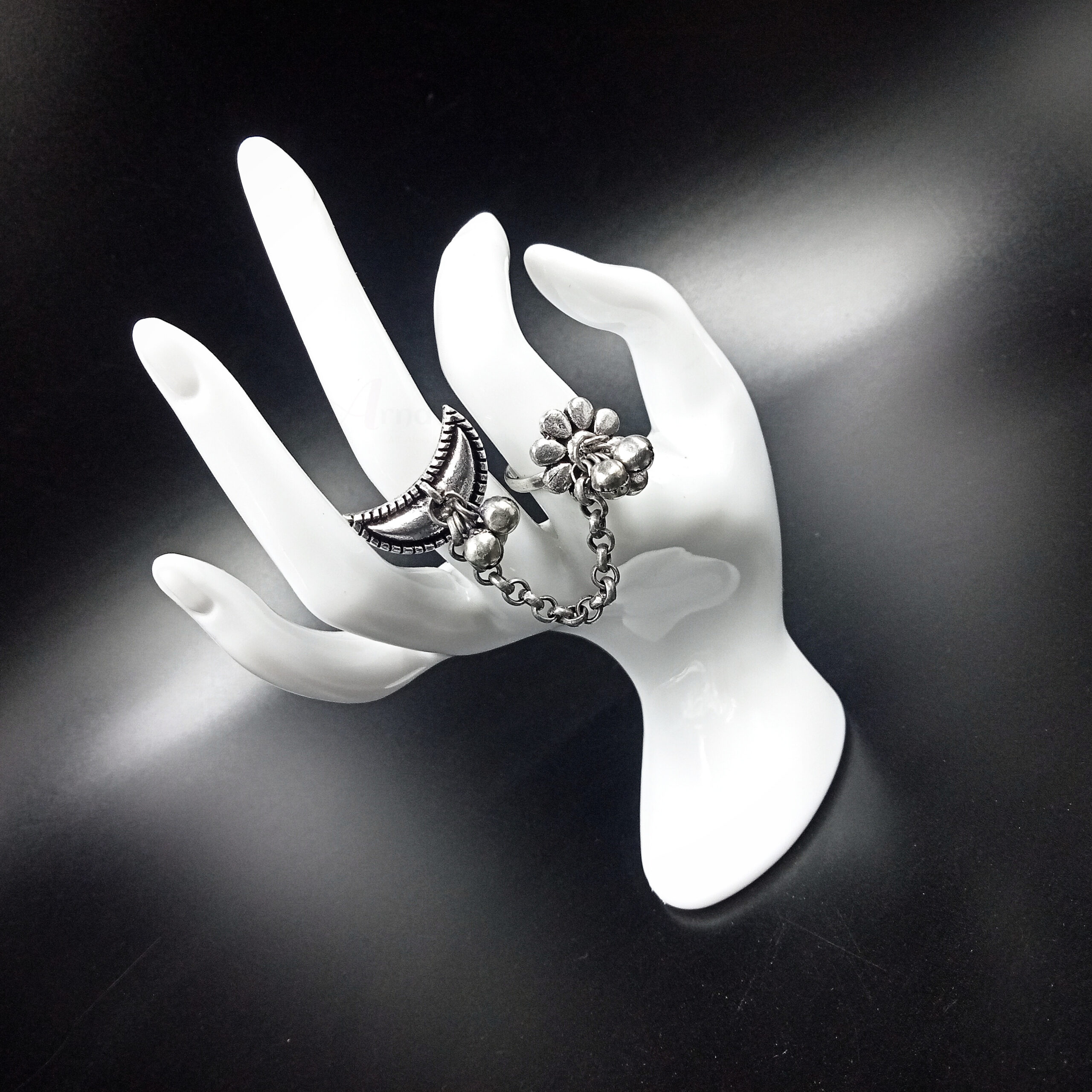 1 PC DOUBLE RING GHUNGROO ADJUSTABLE SILVER FINGER RING