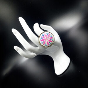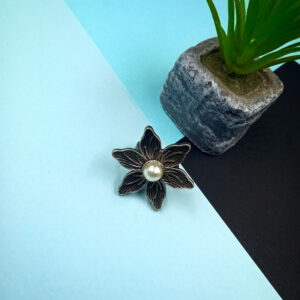 1 PC FLOWER SHAPE STONE SET BIG SILVER RING