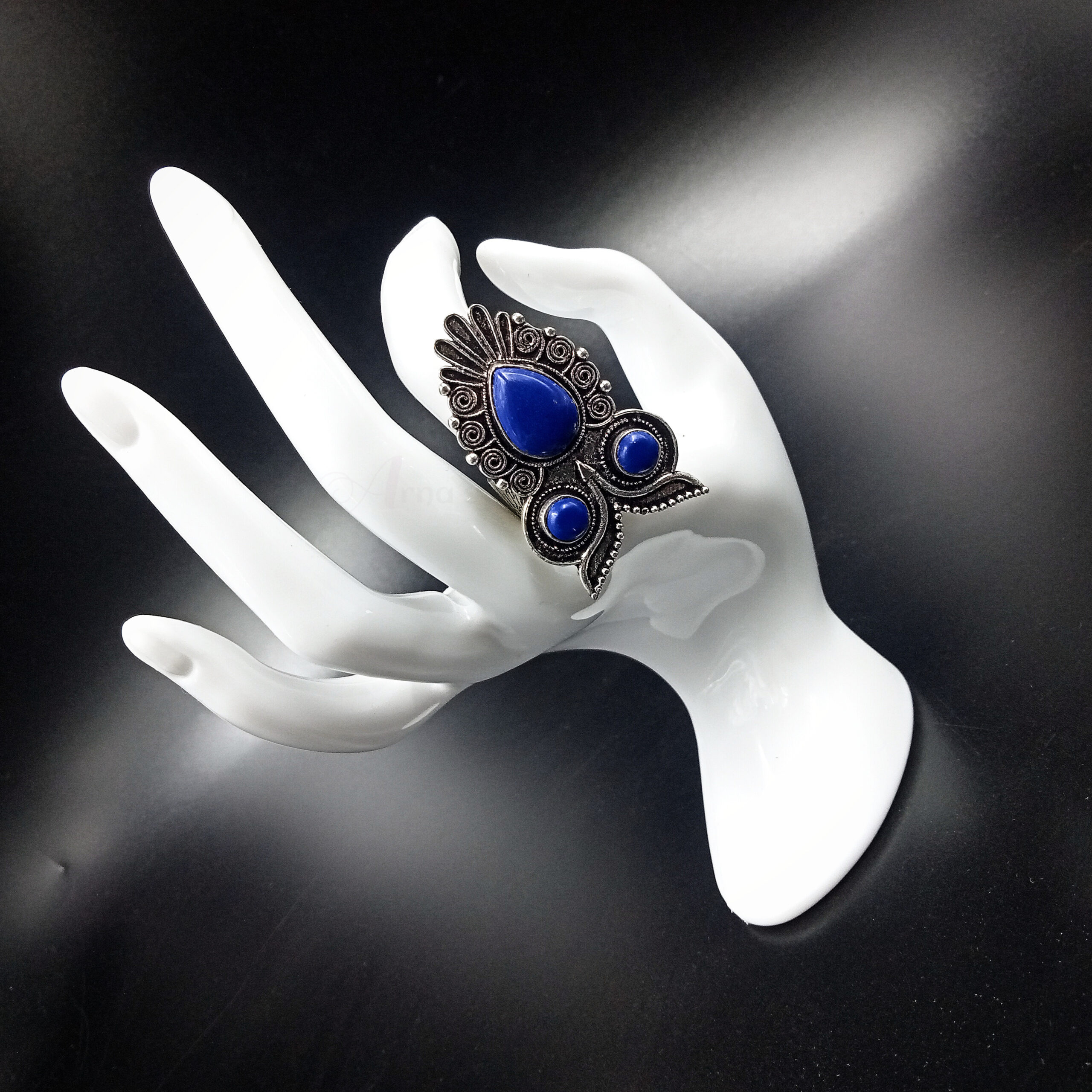 1 PC BLACK WHITE GOLDEN HAND PAINTED SILVER FINGER RING