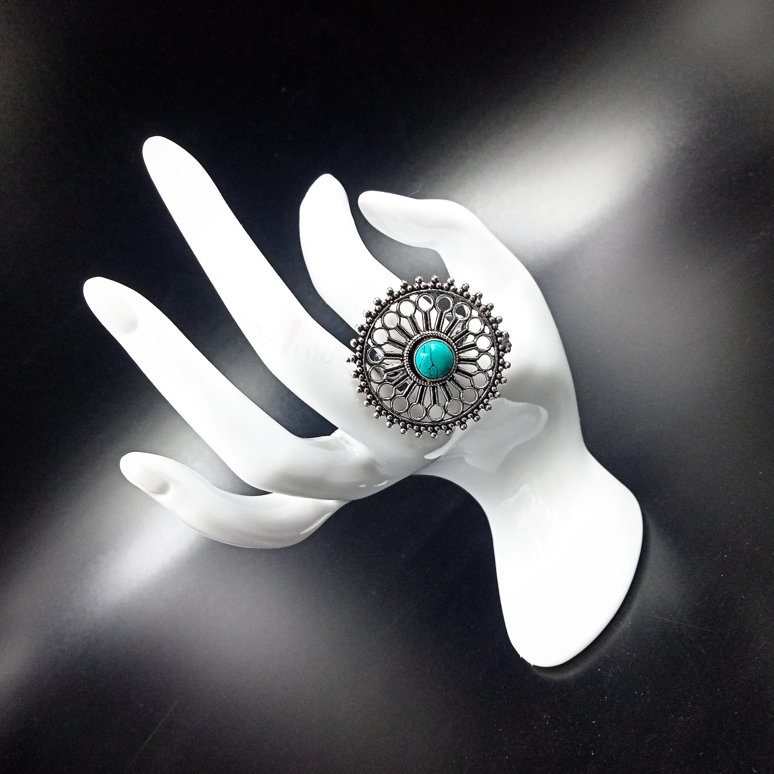 1 PC BLACK WHITE GOLDEN HAND PAINTED SILVER FINGER RING