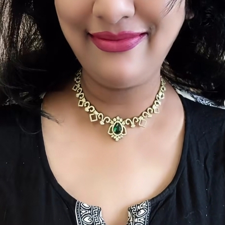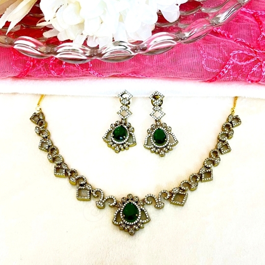ADNECK0012- ARNAS MEHENDI PLATED EMERALD GREEN AMERICAN DIAMOND NEKLACE SET