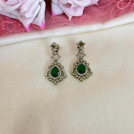 ADNECK0017- ARNAS MEHENDI PLATED EMARALD GREEN AMERICAN DIAMOND CHAIN PENDENT NEKLACE SET