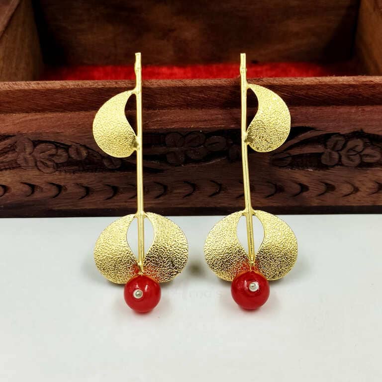 ARNAS 1 PAIR GOLDEN BRASS METAL WITH LOOK ALIKE PEARL DESIGNER MOTIVE EARRING