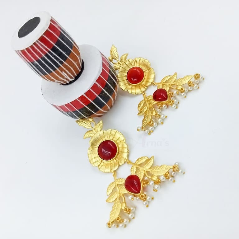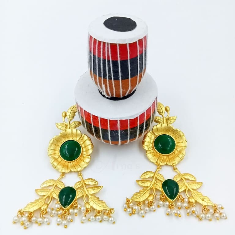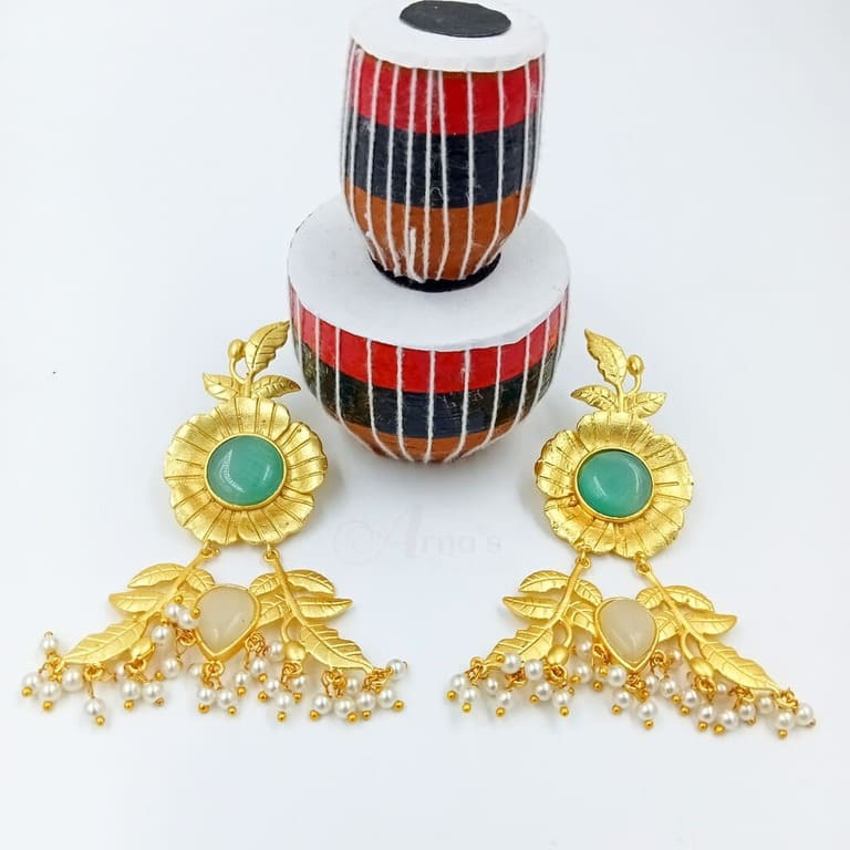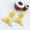 ARNAS 1 PAIR PACK OF BRASS GOLDEN DANGLER EARRING WITH BIG SKY BLUE MONALISA STONE