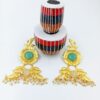ADNECK0017- ARNAS MEHENDI PLATED EMARALD GREEN AMERICAN DIAMOND CHAIN PENDENT NEKLACE SET