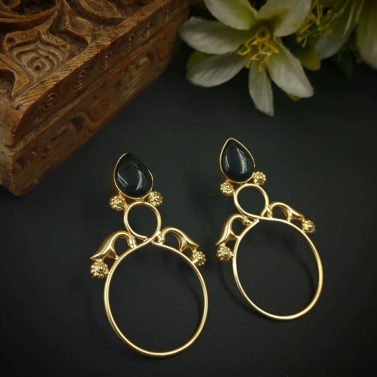 OXINECLASE0014 - ARNAS HANDCRAFTED SILVER & BLACK BEADS WITH OXIDIZED GERMAN SILVER LEAF MOTIVE PENDENT JEWELLERY SET