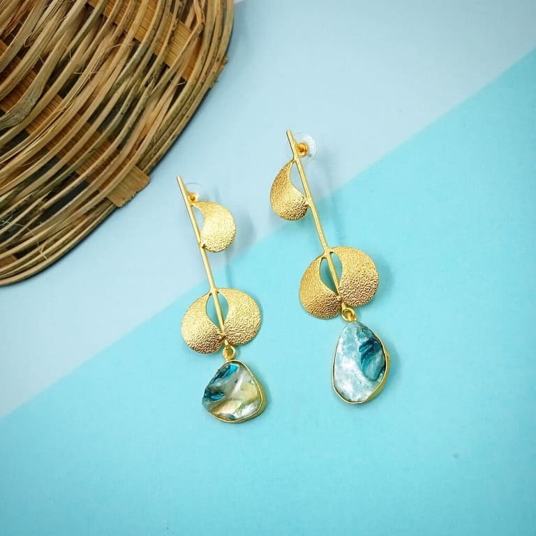 ARNAS 1 PAIR GOLDEN BRASS METAL WITH MOTHER OF PEARL DESIGNER MOTIVE EARRINGS