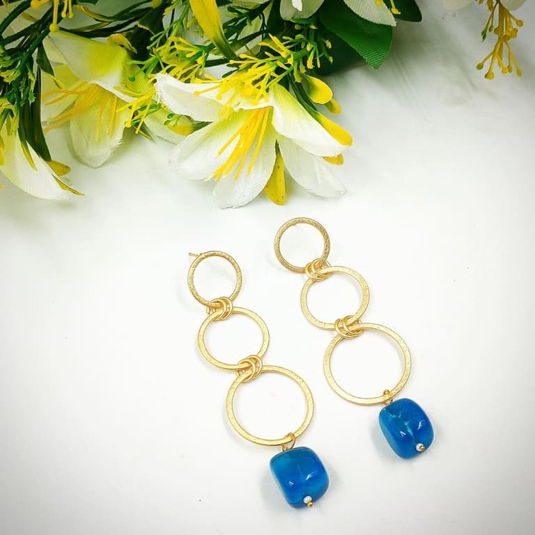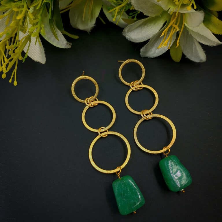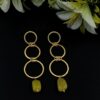ARNAS 1 PAIR PACK OF GOLDEN BRASS EAR STUD WITH YELLOW MONALISA STONE