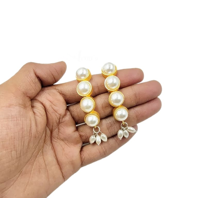ARNAS 1 PAIR PACK OF GOLDEN BRASS METAL WITH LOOK ALIKE PEARL & OVAL PEARL BEADS DESIGNER EARRING