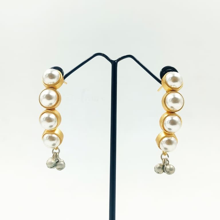 ARNAS 1 PAIR PACK OF GOLDEN BRASS EAR STUD WITH YELLOW MONALISA STONE