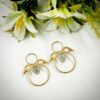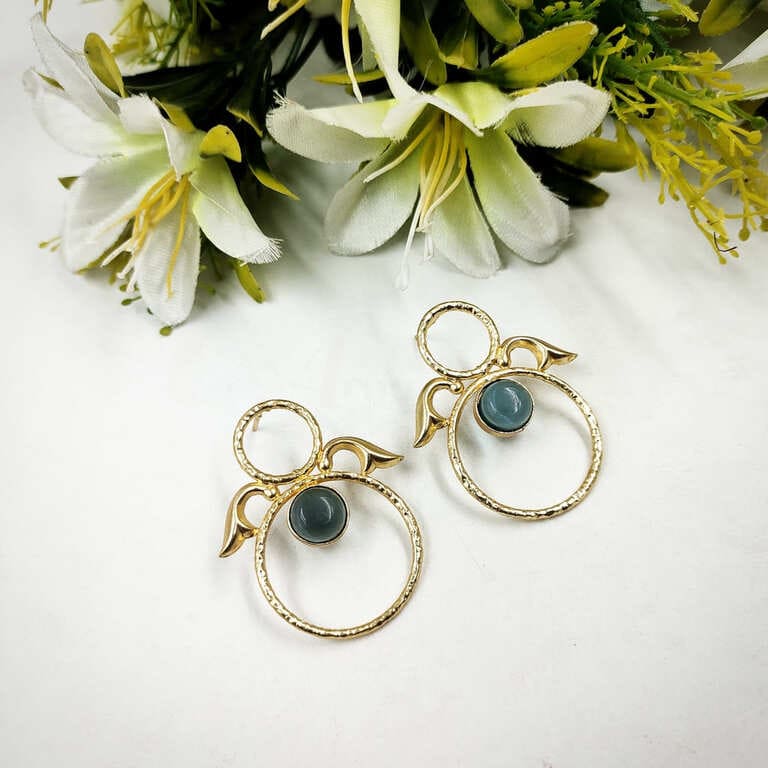 ARNAS 1 PAIR PACK OF BRASS GOLDEN DANGLER EARRING WITH BIG SKY BLUE MONALISA STONE