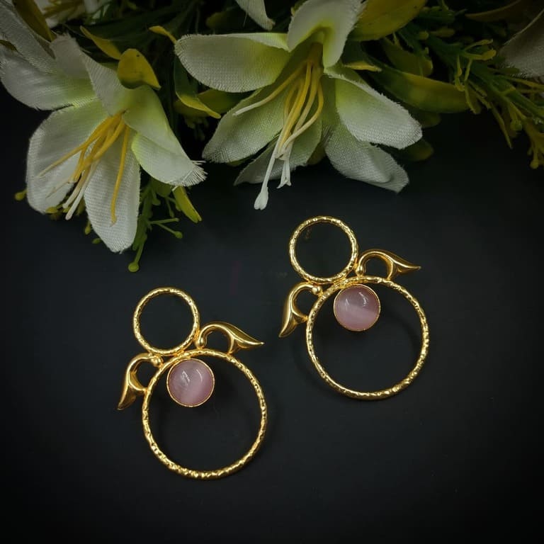 ARNAS 1 PAIR PACK OF GOLDEN BRASS EAR STUD WITH YELLOW MONALISA STONE