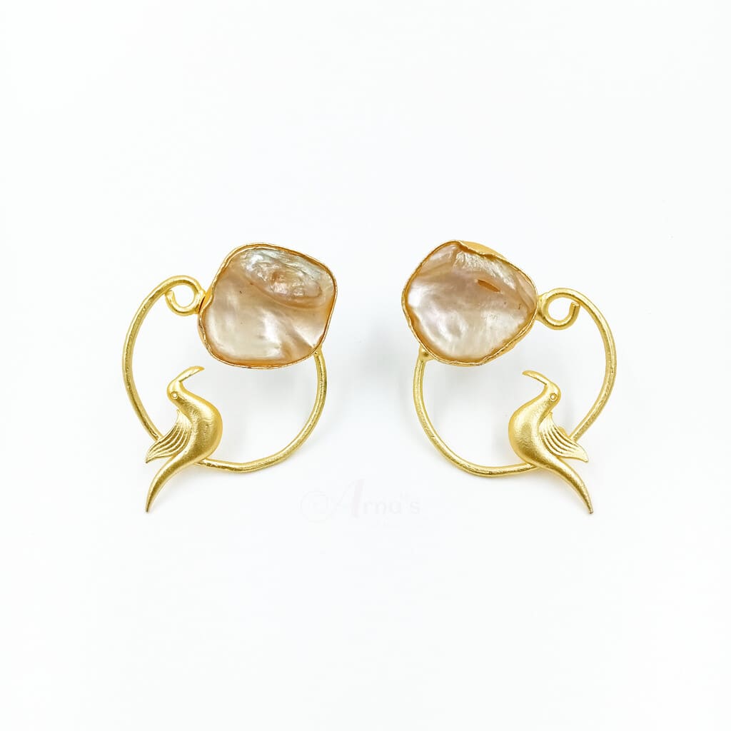 SILVER BIRD MOTIVE ORANGE STONE SET EARRINGS