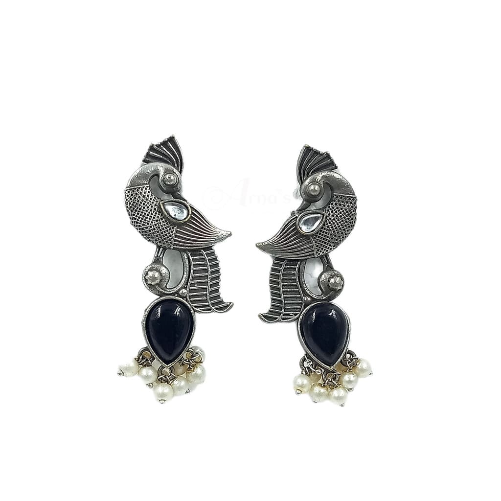 ARNAS SILVER TONED AMERICAN DIAMOND TURQUOISE MONALISA STONE DESIGNER NECKLACE SET