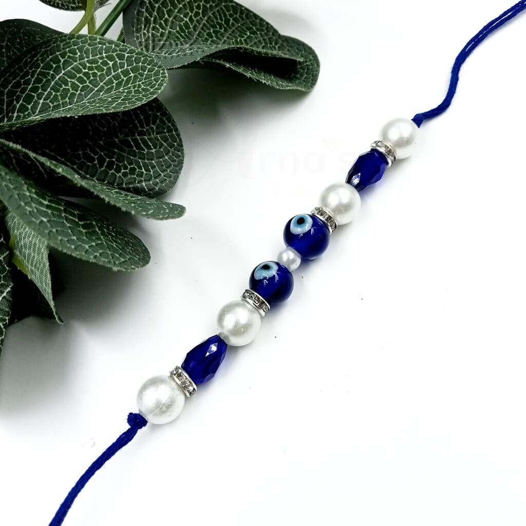 ARNAS 1 PC BLUE ROUND MOTIF EVIL EYE CHARMS DESIGNER RAKHI