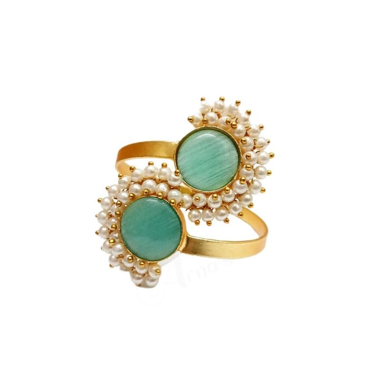1 PC TANJOR PAINTING | HAND PAINTED ON SEMI PRECIOUS STONE GAJRA SILVER FINGER RING