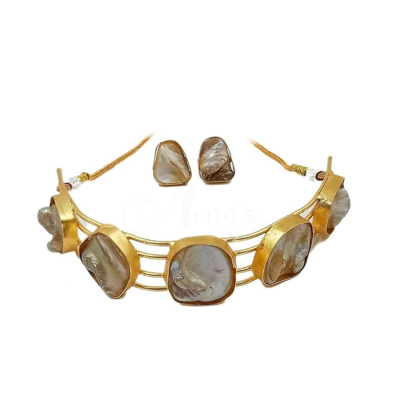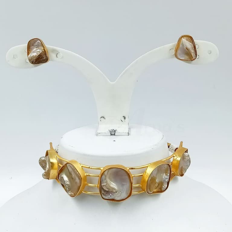 ARNAS BRASS GOLDEN WITH MOTHER OF PEARL HASLI NECKLACE & EAR RING SET