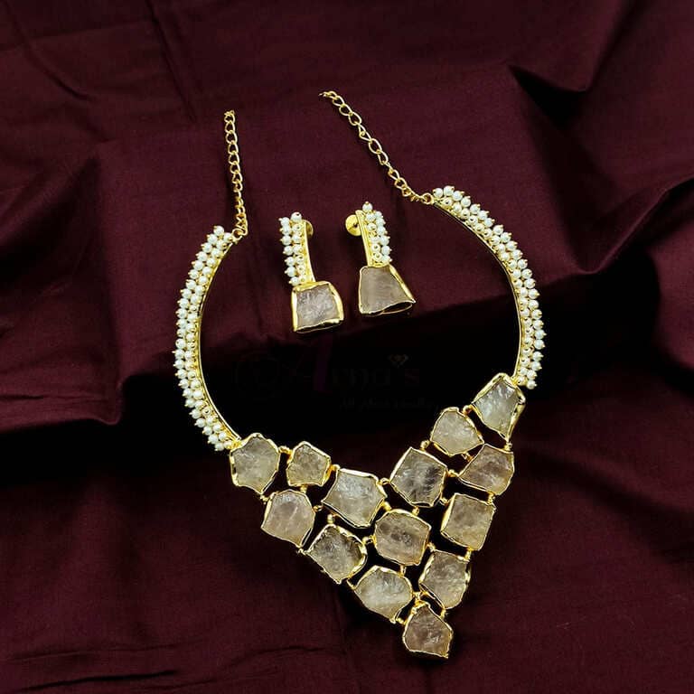 - This jewellery set consists of a necklace and a pair of earrings.
