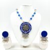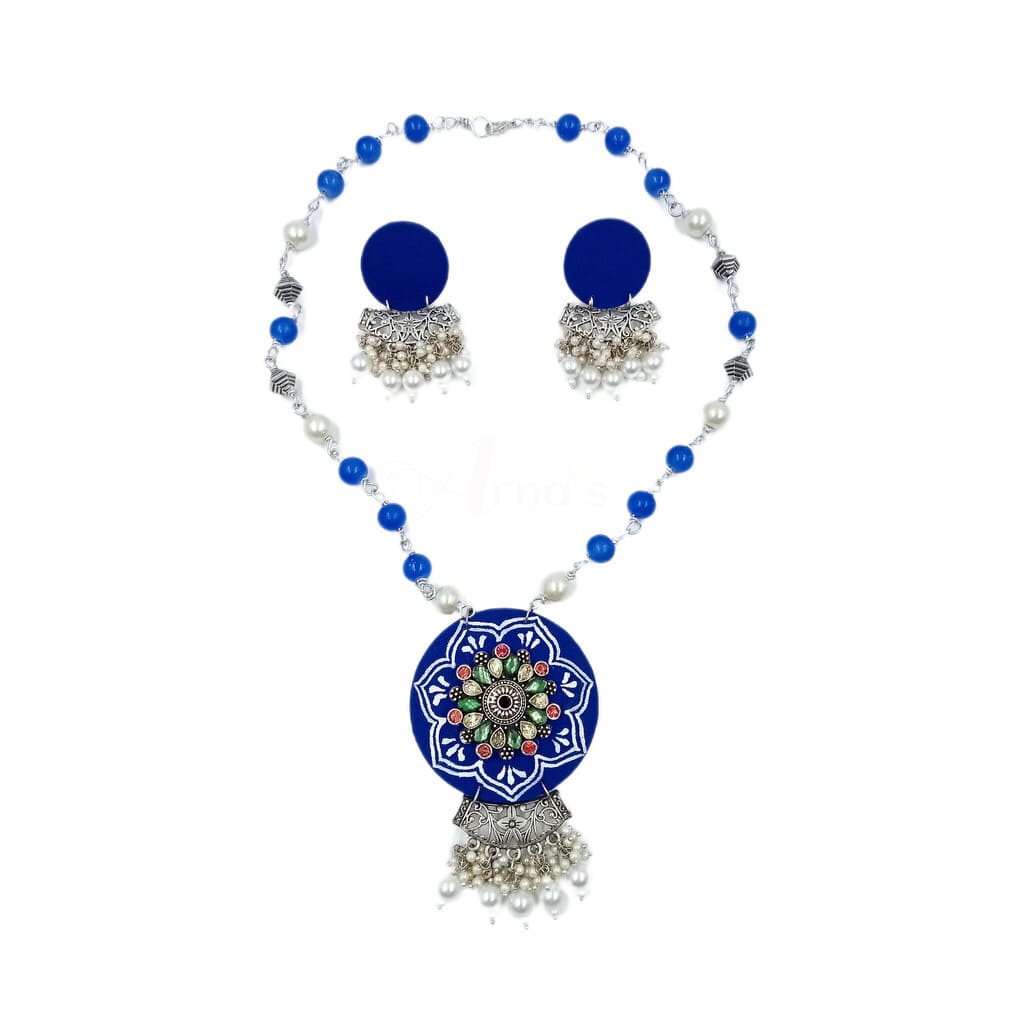OXINECLASE0014 - ARNAS HANDCRAFTED SILVER & BLACK BEADS WITH OXIDIZED GERMAN SILVER LEAF MOTIVE PENDENT JEWELLERY SET