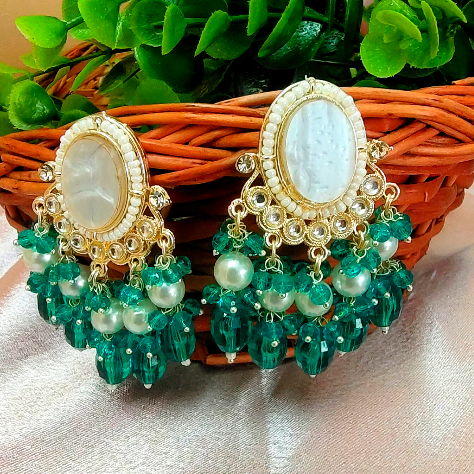 ARNAS GREEN PREMIUM QUALITY MEENAKARI BRIDAL KUNDAN NECKLACE WITH EARRINGS MANGTIKA SET