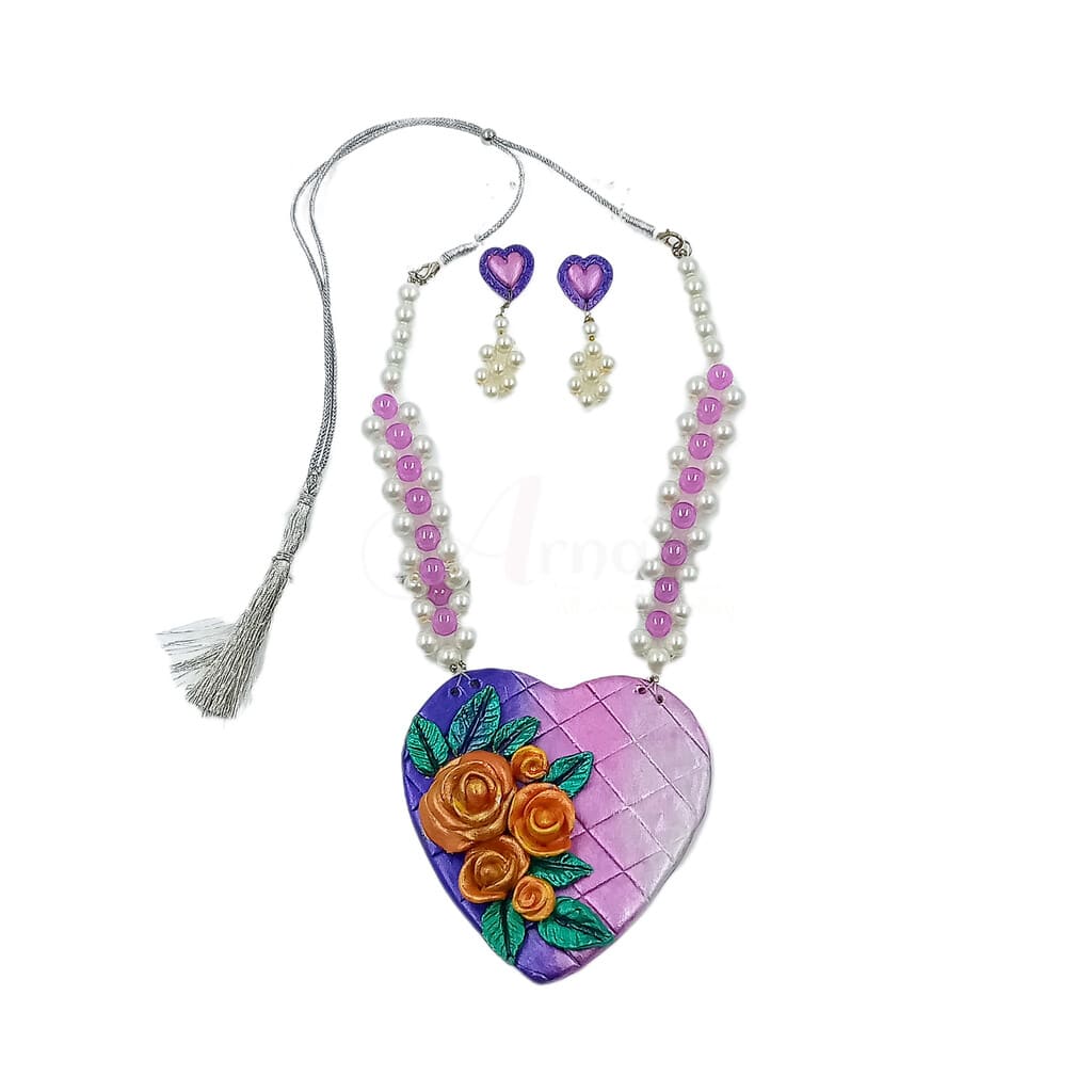 ARNAS SILVER TONED AMERICAN DIAMOND RUBY RED DESIGNER NECKLACE SET