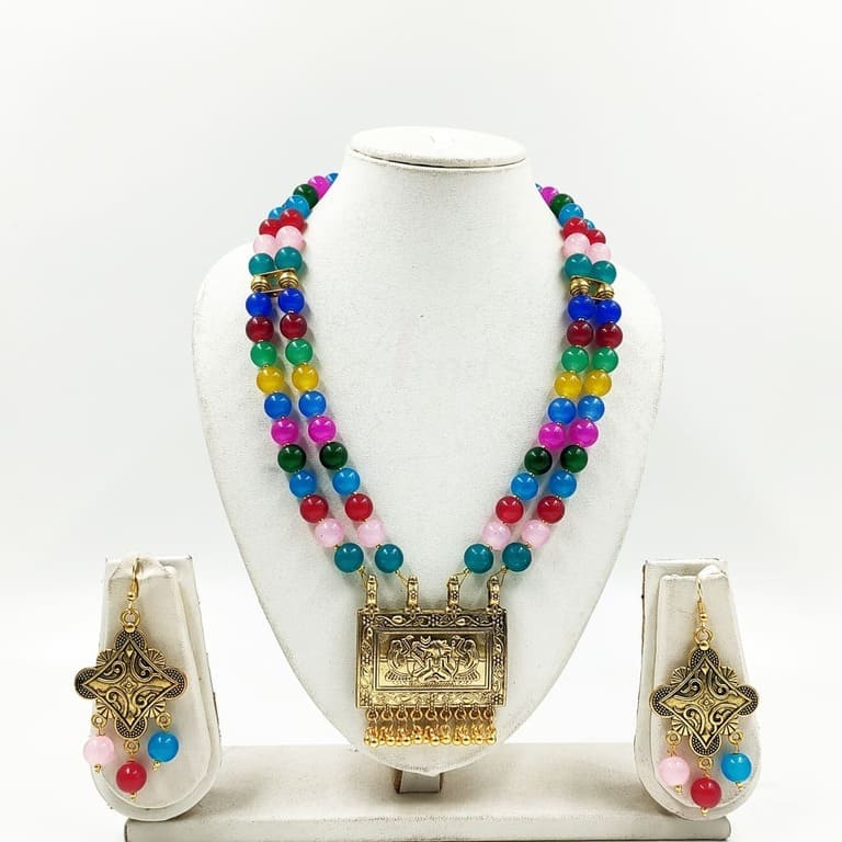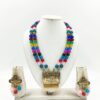 ARNAS SILVER TONED AMERICAN DIAMOND TURQUOISE MONALISA STONE DESIGNER NECKLACE SET