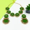 ARNAS SILVER TONED AMERICAN DIAMOND TURQUOISE MONALISA STONE DESIGNER NECKLACE SET