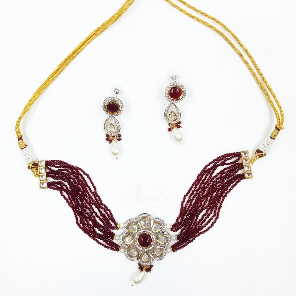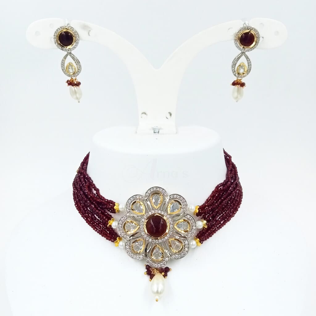 ADNECK0015- ARNAS MEHENDI PLATED RUBY RED AMERICAN DIAMOND NEKLACE SET