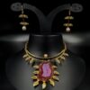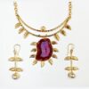 ADNECK0005- ARNAS GOLD PLATED RUBY RED AMERICAN DIAMOND NEKLACE SET