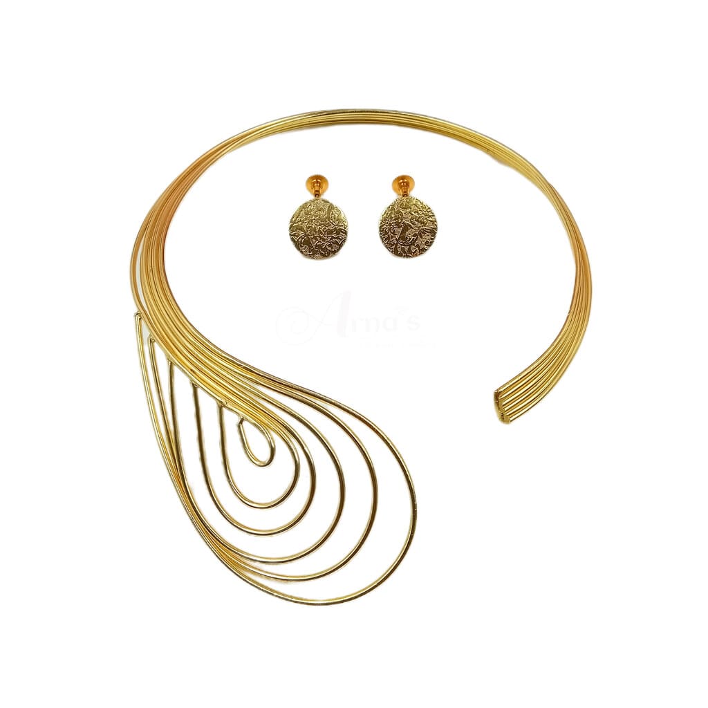 ARNAS MATT GOLD TANJOR PAINTING BLACK SEMI PRECIOUS STONE - STUDED EARRINGS CHOKER NECKLACE SET