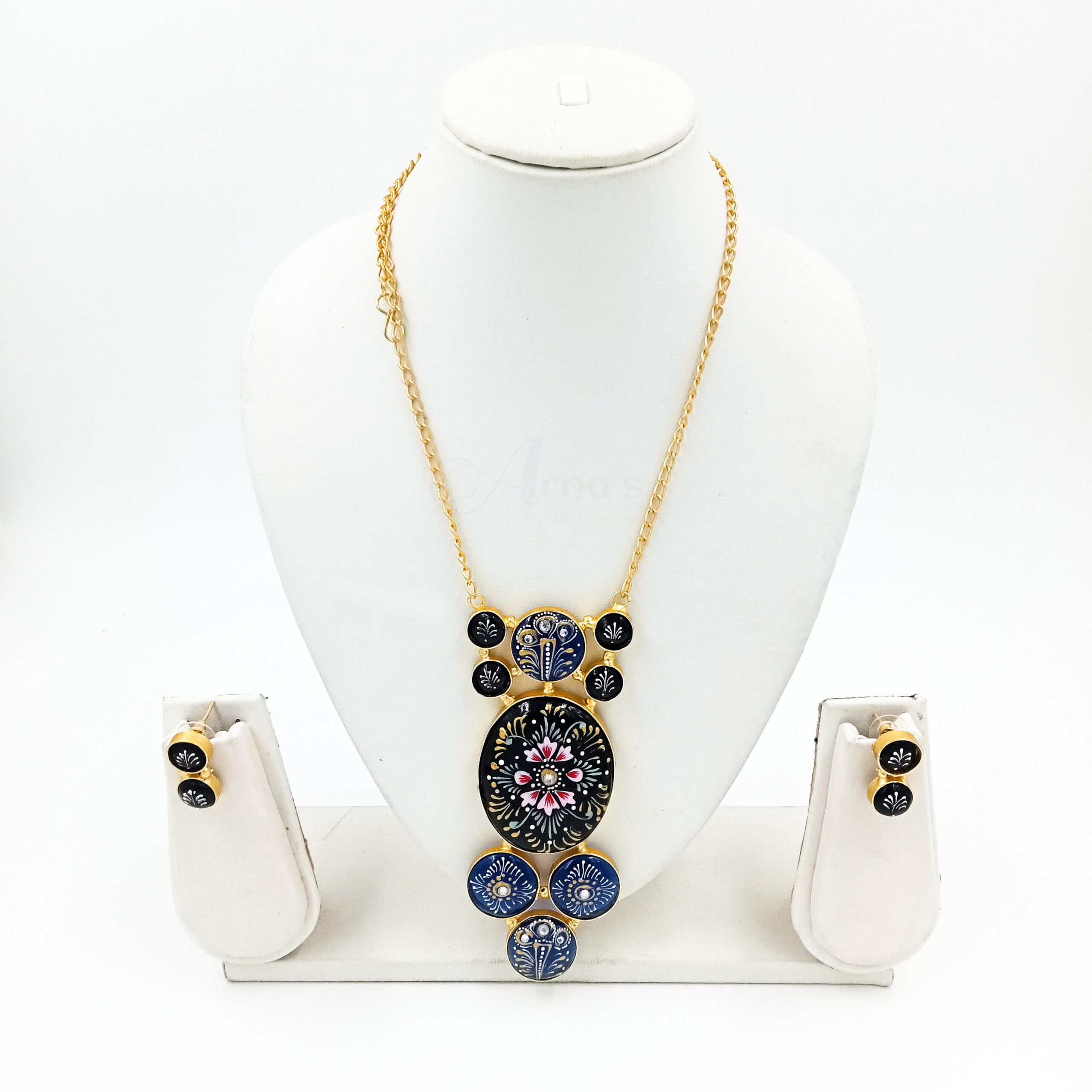 This jewellery set consists of a necklace and a pair of earrings.