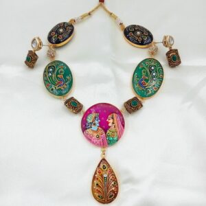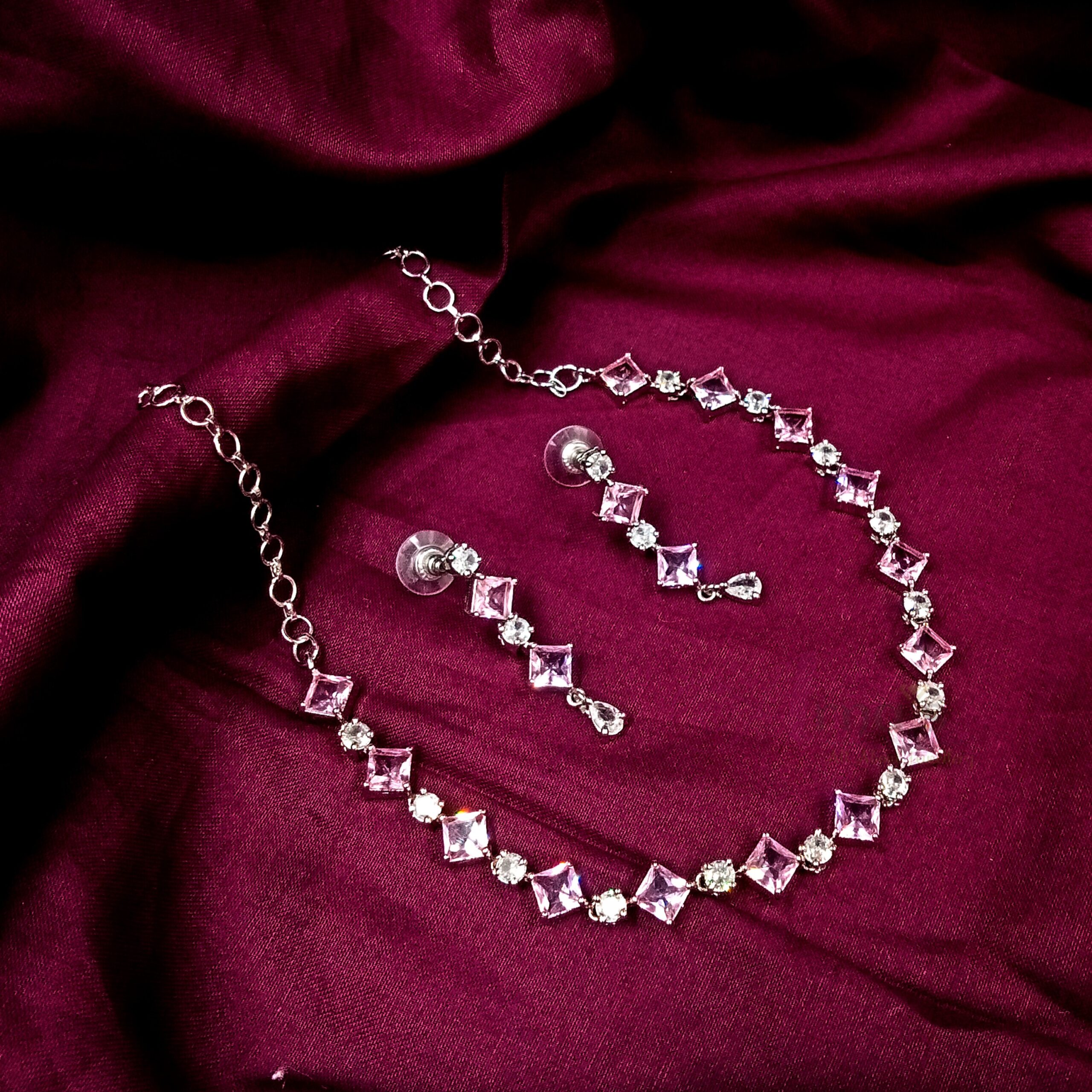 ADNECK0015- ARNAS MEHENDI PLATED RUBY RED AMERICAN DIAMOND NEKLACE SET