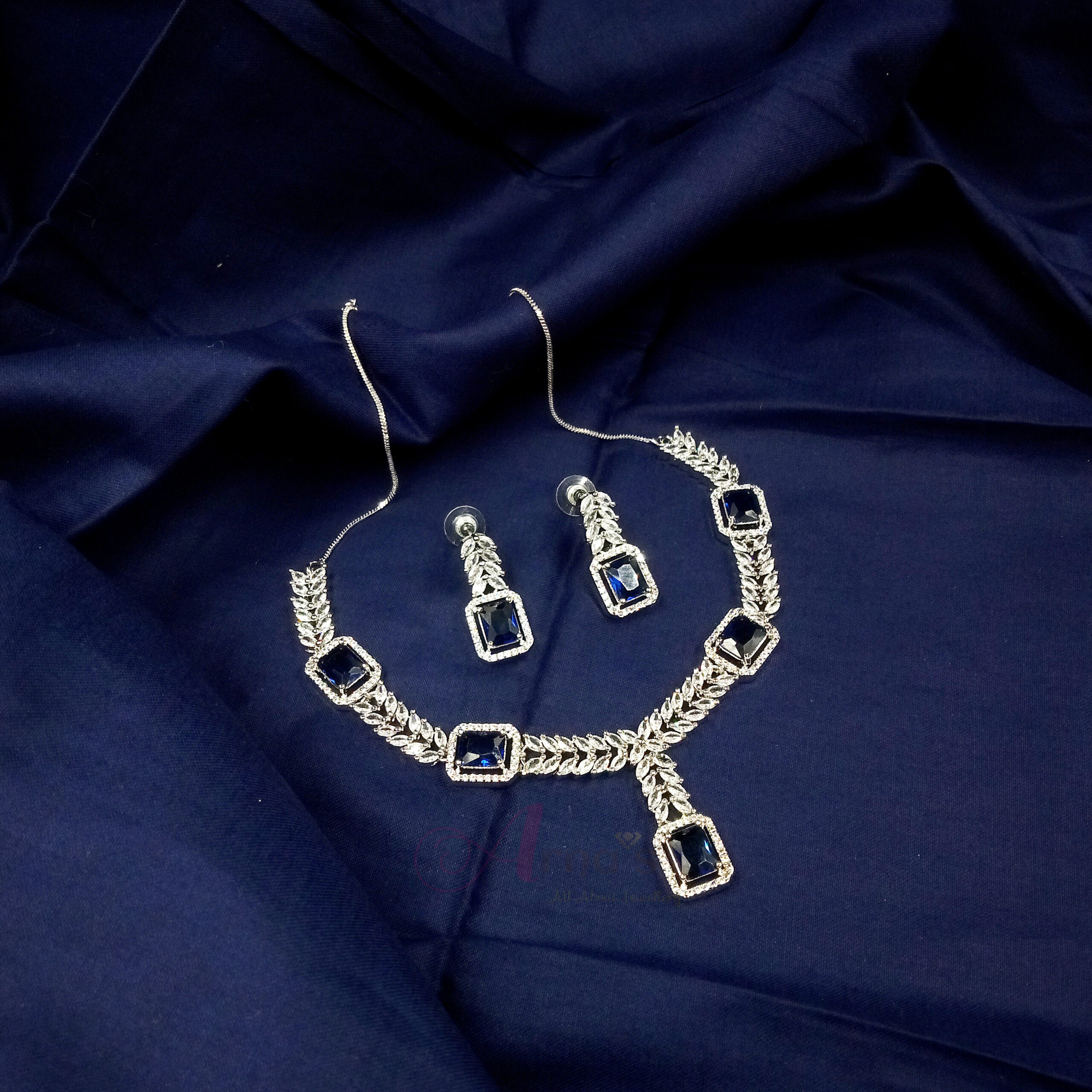STONE : WHITE AMERICAN DIAMOND, MID-NIGHT BLUE STONE