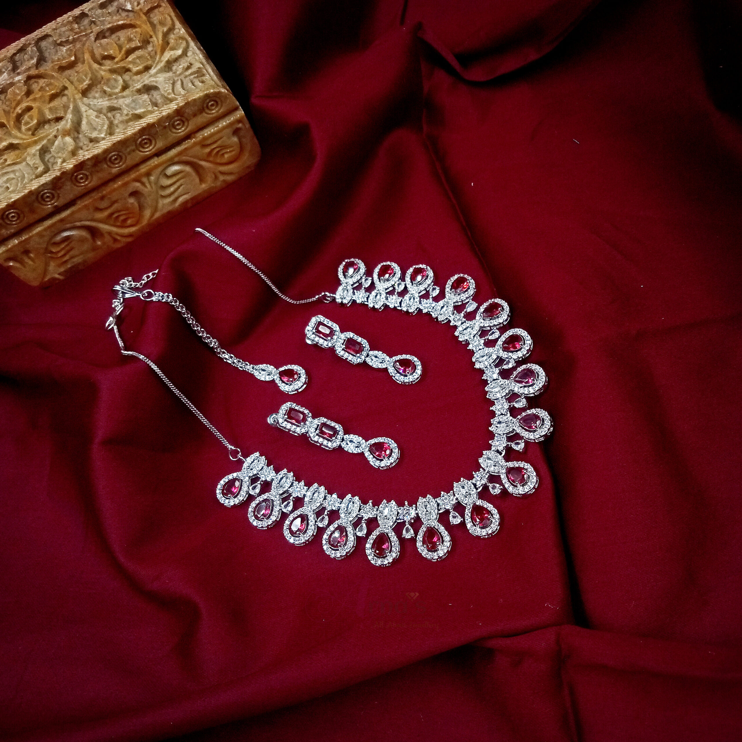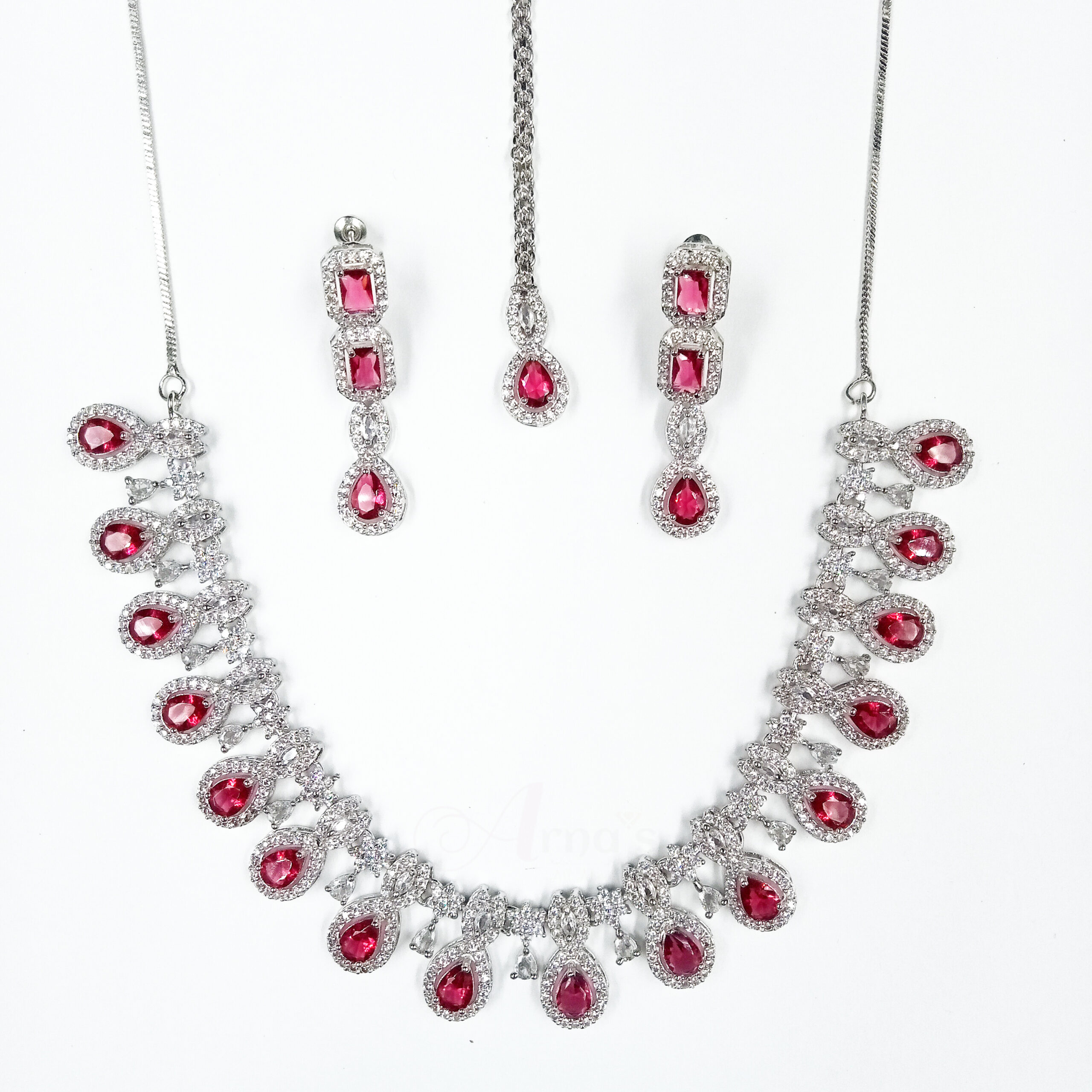 STONE : WHITE AMERICAN DIAMOND, RUBY RED STONE