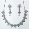 ARNAS SILVER TONED AMERICAN DIAMOND TURQUOISE MONALISA STONE DESIGNER NECKLACE SET