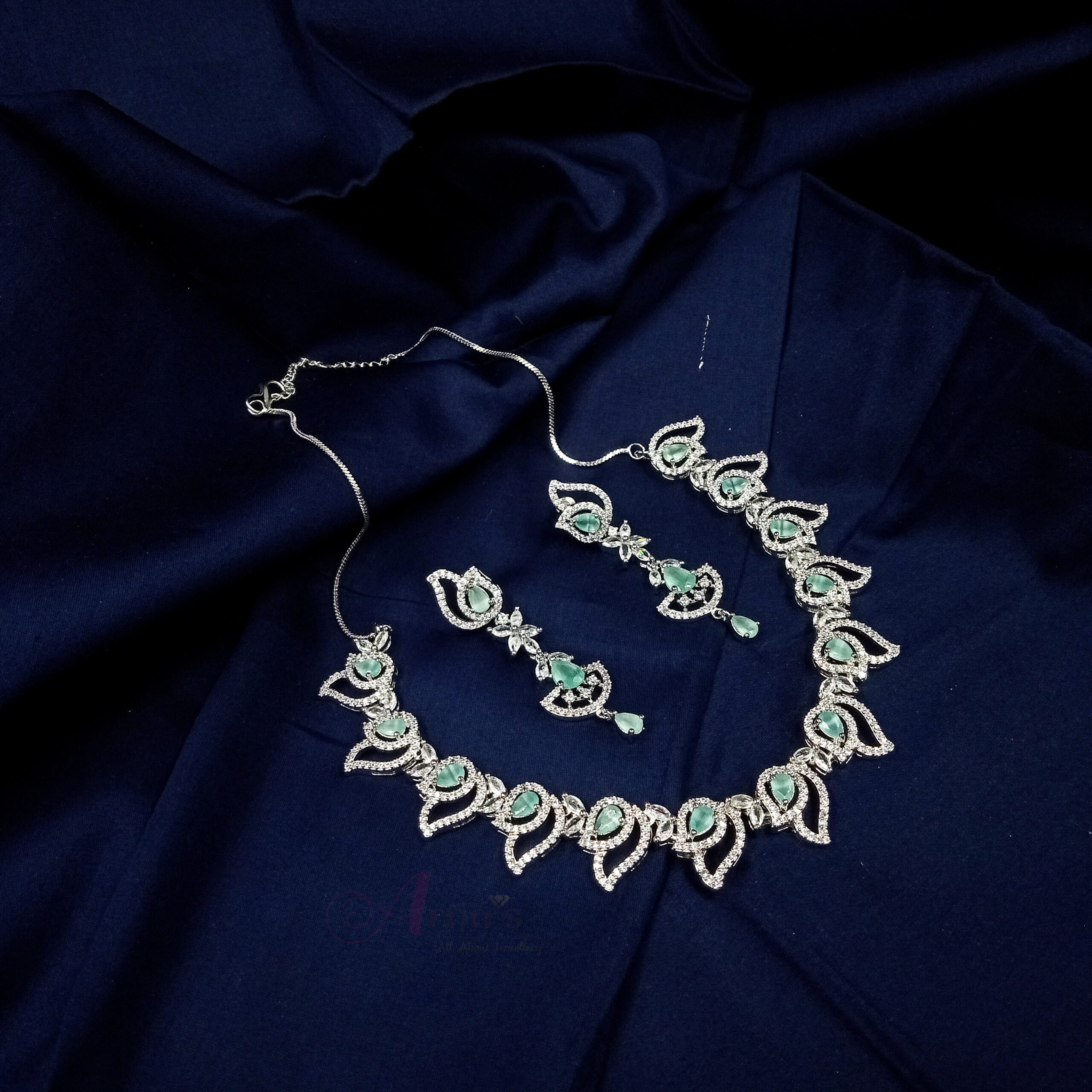 ARNAS WHITE AMERICAN DIAMOND NANO SETTINGS DESIGNER NECKLACE SET