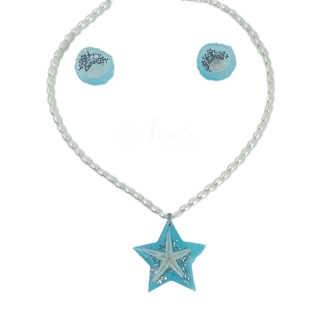 OXINECLASE0014 - ARNAS HANDCRAFTED SILVER & BLACK BEADS WITH OXIDIZED GERMAN SILVER LEAF MOTIVE PENDENT JEWELLERY SET