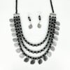 OXINECLASE0014 - ARNAS HANDCRAFTED SILVER & BLACK BEADS WITH OXIDIZED GERMAN SILVER LEAF MOTIVE PENDENT JEWELLERY SET
