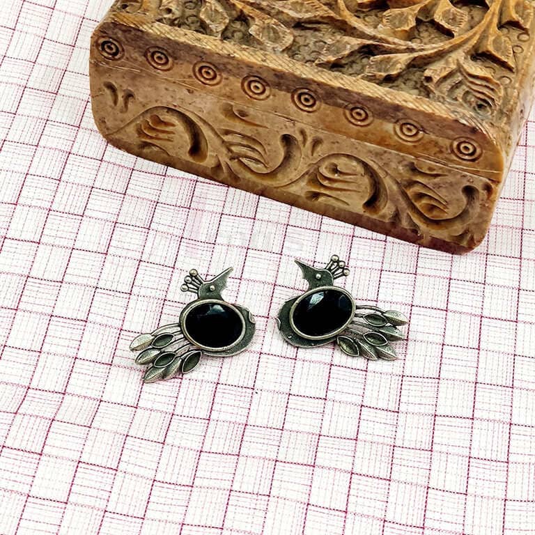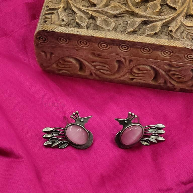 SILVER BIRD MOTIVE MONALISA STONE SET EARRINGS
